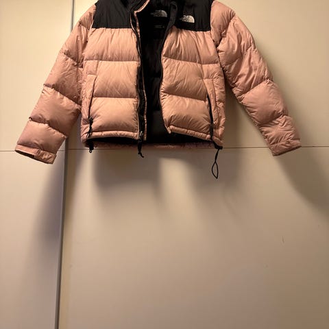 The North Face Vinterjakke i størrelse XS . Jakken er rosa og laget med dun som isolasjonsmateriale, egnet for kalde værforhold.
