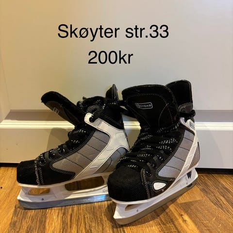 Andre skøyter i størrelse 43. Skøytene har svart og hvit farge med metalliske skøyteblader. Må hentes.