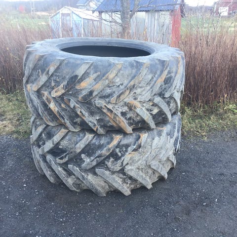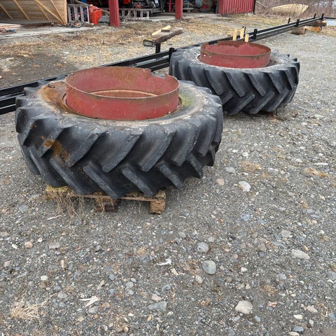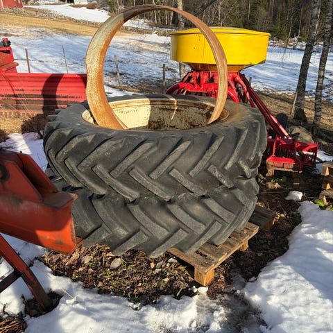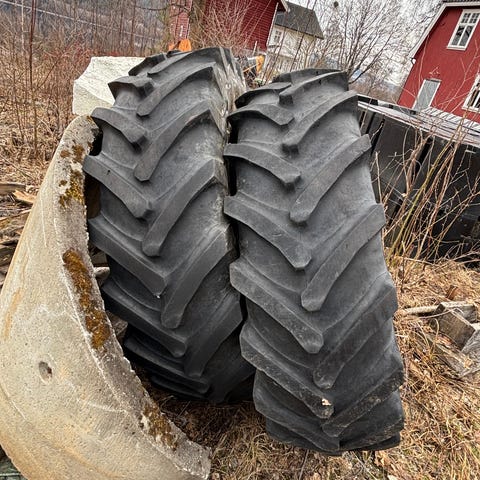 Originale bakfelger og helsveiste framfelger til Valtra med 10 bolt framaksel. Følger med dekk. Et punktert bakdekk (rift i side). Framdekk må legges om på felg. Dekk er pigget. 420/70-28 og 520/70-38. Selges samlet kr 10.000