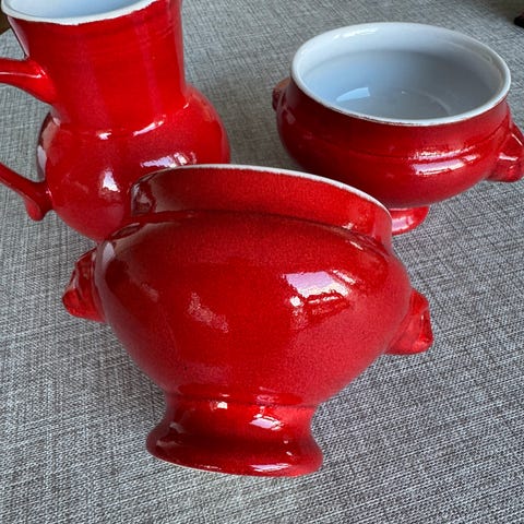 3 stk kobolt blå Emile Henry suppeskåler. Kan brukes i stekeovn.