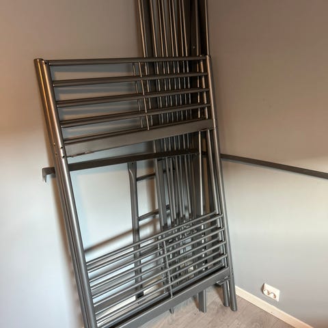 Familiekøyseng med madrasser gis bort mot henting. Sengen er skrudd ned og klar til å hentes.