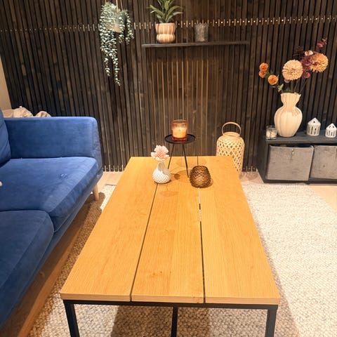 Salongbord fra Skeidar, i god stand. Bordplaten er foliert treplate i imitert sement.