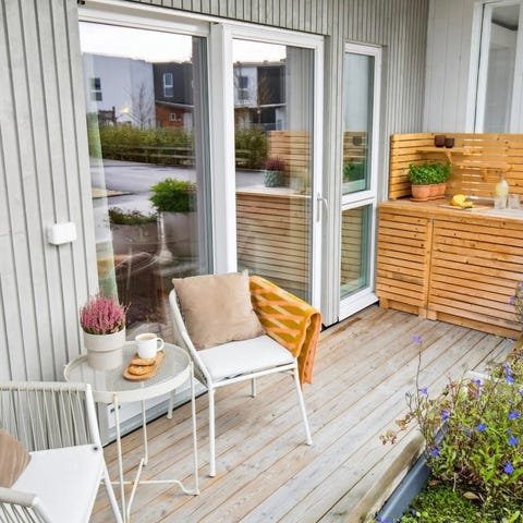 Hagebord og utemøbler i tre med puter