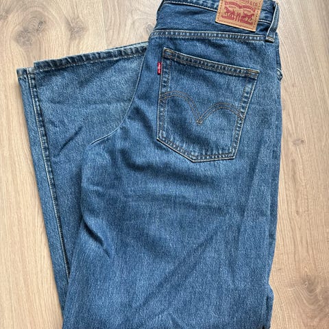 Kjøpt nye i høst og lagt opp hos skredder for å passe 1.60. Wide jeans, modellen heter XL. Svart vasket farge. Deles da de ble litt små til meg i vidden dessverre. W24 som passer en vanlig S. Jeg bruker 26 i andre bukser.