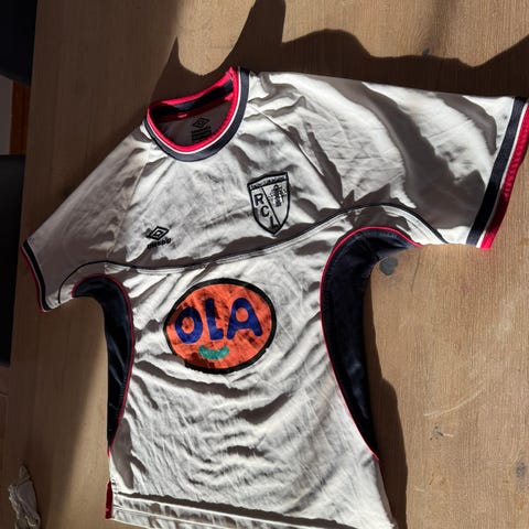 Eldre Bolton hjemmedrakt til salgs. Synlig bruksmerker. Størrelse medium..