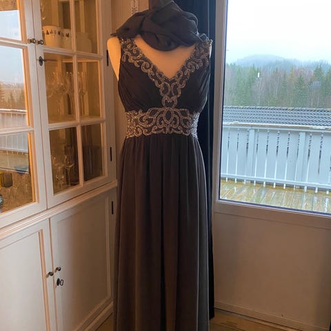 Floyd Kjole til spesiell anledning i størrelse S, blå farge og laget av polyester. Kjolen har blonder på overdel med lange ermer og en åpen ryggdetalj. Passer til kvinner. Nesten ikke brukt
