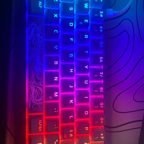 Xtrfy K5 mekanisk tastatur med RGB bakgrunnsbelysning. Tastaturet har mekaniske brytere og en kompakt design. Egnet for bruk til datamaskiner og spill. Tastaturet er i perfekt stand og har blitt brukt pent og renset regelmessig. Har oppgradert bryterene fra de normale Red bryterene til kjappere responderende og mye bedere lyd kailh speed silver brytere. De orginale følger selvfølgelig med.