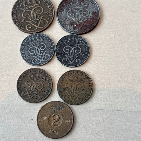 Svenske mynter fra 1956 1, 5, 25, 50 øre 10kr ulike årstall