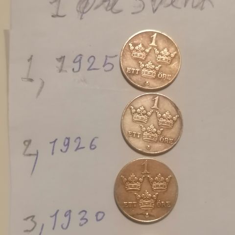 Svenske mynter 2 øre og 5 øre fra 1930 -1965