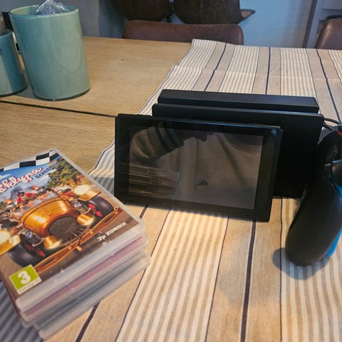 Nintendo Switch med tilbehør og 2 spill