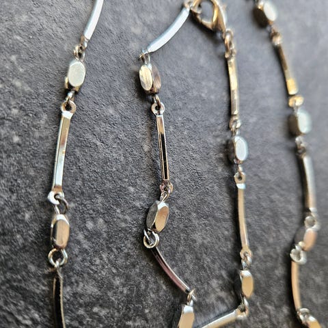 Smykke g tilhørende ørepynt. Ikke ekte sølv, men dekorativ pyn likevel 😃 Lngde på kjede er 49 cm.