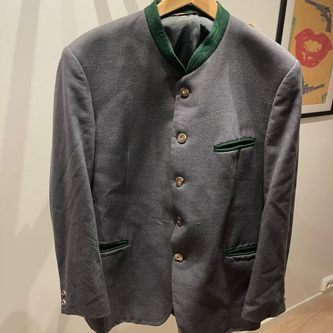 Kjempe fin jakke , god ullkvalitet. Passer både til pent og hverdag. Ble alt for fort liten i st her derfor er den så pent brukt