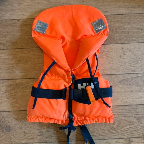 Selger HH redningsvest 5-15 kg. Glidelås og klips rundt magen og feste under rumpen med klips.