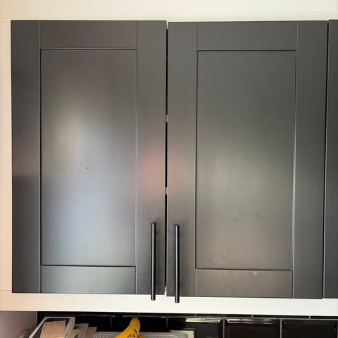 Skap skuffer og alt det er fin stand. Trebenkeplate må nok pusses og oljes på nytt før bruk.