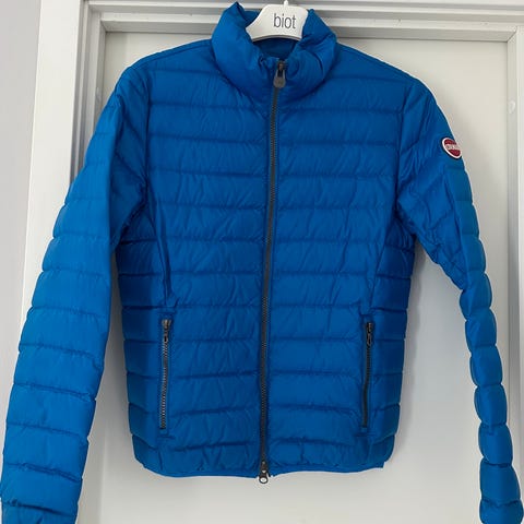 Save The Duck jakke i størrelse xs for ungdom, unisex. Jakken er blå og laget av nylon. Den har hette og er designet for å gi varme og beskyttelse mot værforhold.