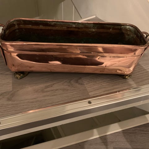 Rammen står stødig på egen fot. Messingen har en pen, naturlig patina som gir autentisk preg. Glass er intakt.