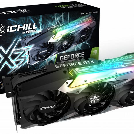 Nvidia RTX 3080 Phoenix skjermkort med vannkjølt kjøler i kobber og metall bakplate fra EK.