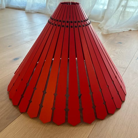 Tok bilde inne i lampeskjermen et hull stoff på innsiden og noen flekker eller noe lodotter.