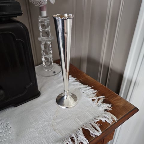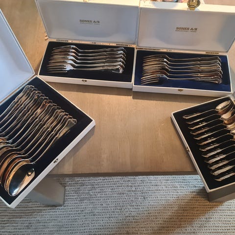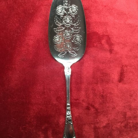 Smørbrødklype, 20,5 cm i 830S. I mønsteret Opphøyd Rose som er designet av Robert Geiger i 1916, og er inspirert av naturalismen fra 1850-tallet. En finner også elementer av jugendstil.