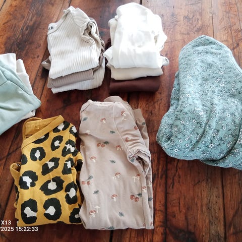 Selger pakke med bodyer i størrelse 56 (1–2 måneder).