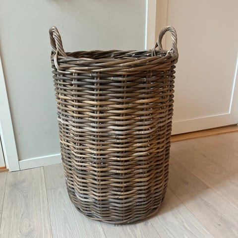 Solid flettet kurv med stålkonstruksjon inni. Kjøpt ny for 700kr for noen år siden selges for 500