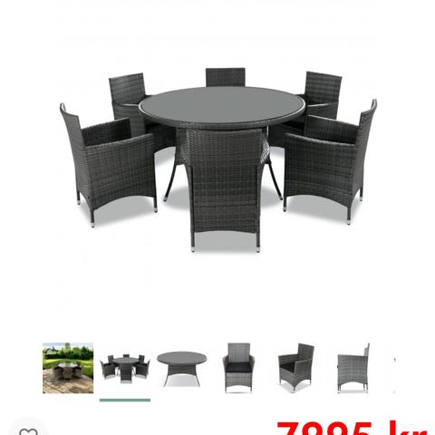 Selger ei svært solid spisegruppe. Lages i impregnert treverk slik at det tåler vær og vind. Anbefaler å legge inn forhåndsbestilling, da kapasiteten fort blir sprengt.