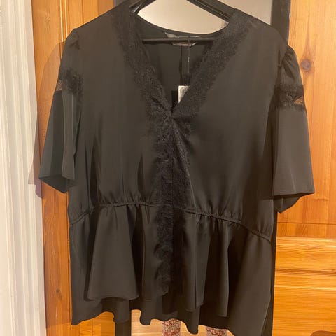 Primark topp i svart farge. Toppen har detaljer som blonder og volanger på ermene.