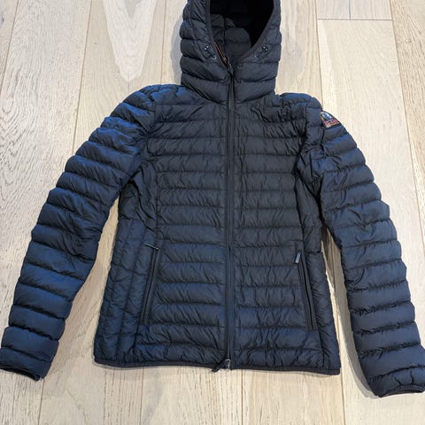 Parajumpers Masterpiece Series i størrelse S for kvinner. Jakken er svart og laget av dun som isolasjonsmateriale. Den har hette med pelskant og er designet for utendørs bruk. Jakken er lite brukt.