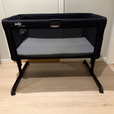 Chicco Next2Me Air, Bedside Crib, India ink Bedside crib barneseng med justerbar høyde og nettingpaneler for ventilasjon kjøpt ny i 2024. Brukt av ett barn i en liten periode som har sovet i babynest i sengen, så madrassen er som ny. Kommer i praktisk bæreveske. Designet for å plasseres inntil foreldresengen for enkel tilgang til barnet. Passer for nyfødte og små barn.