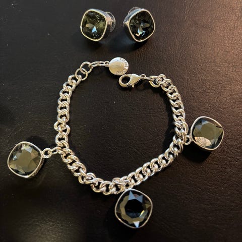 Snö of Sweden øredobber, kjede og armbånd. Et sort hjerte som anheng.