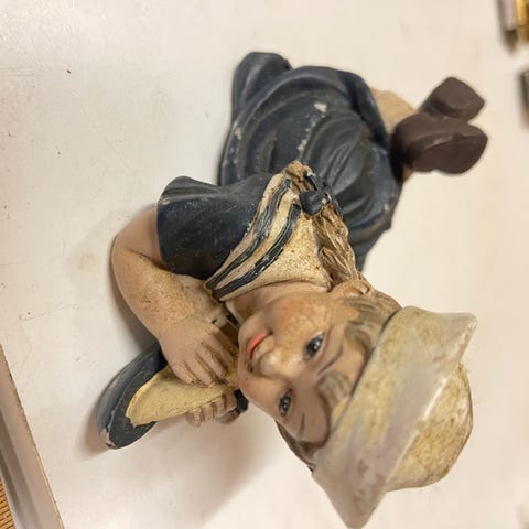 Har tidligere blitt knekt og limt isammen igjen, se bilder. Dette viser ikke særlig på avstand.