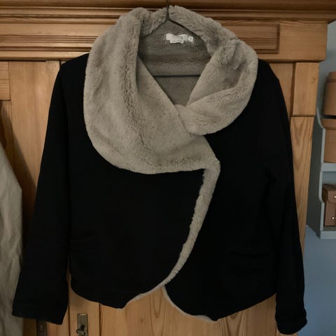 God og myk jakke fra Monsoon med myk pels på innsiden. Str 8-10 år