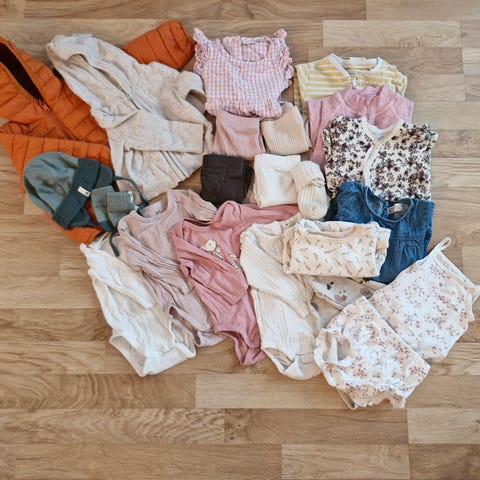 Petit Bateau barneklær for jente i størrelse 62 med flerfarget design. Inneholder ulike plagg tilpasset små barn, laget i ulike materialer. Passer for daglig bruk og gir variasjon i garderoben for små jenter.