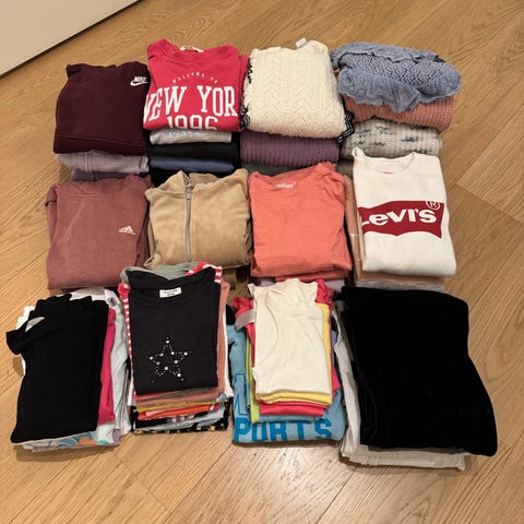 6 gensere i str 134-146 selges samlet. Såvidt brukt. Kun en av genserne har nupper (den med glidlås).