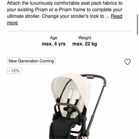 Selger en Cybex e-Priam, en eksklusiv og elektrisk barnevogn som gjør trilleturen ekstra lett og komfortabel. Vognen har integrert elektrisk assistanse som hjelper i oppoverbakker, på ujevnt underlag og bremser automatisk i nedoverbakker.