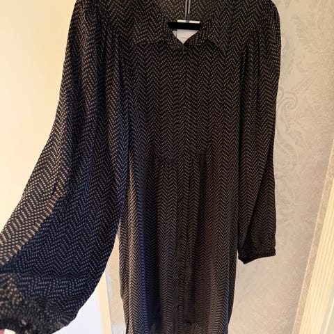 Nydelig sommerkjole i 100% viscose. Kjøpt i en vintage butikk på Grünerløkka, men blir dessverre ikke brukt så håper noen andre kan få glede av den. Knyting i livet så passer nok alle fra str. S og opp. Jeg er 172 og den treffer meg omtrent midt på leggen