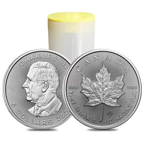 25 stk Sølvmynt 1 oz Maple Leaf 2026