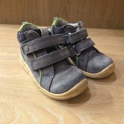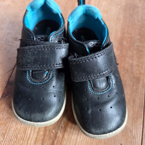 Pent brukt Ecco barnesko i blå skinn, str 22. Glidelås på innside i tillegg til snøring.