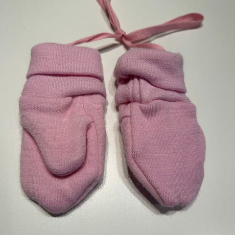 2 par votter og én par fotposer, pent brukt. Størrelse 0-3 måneder.