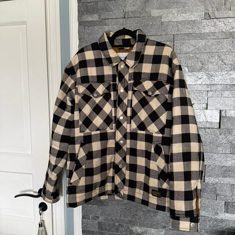 Vailent jakke i størrelse M med flerfarget rutemønster. Laget av polyester, designet for utendørsbruk. Jakken har en glidelås foran og detaljer i fuskepels ved krage og lommer.