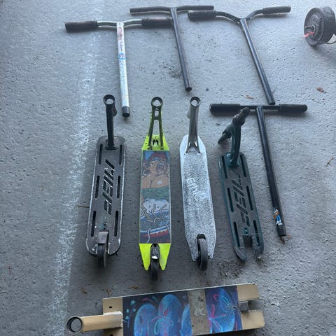 sparkesykkel med titanium styre og plate, håndtak med gummigrep.