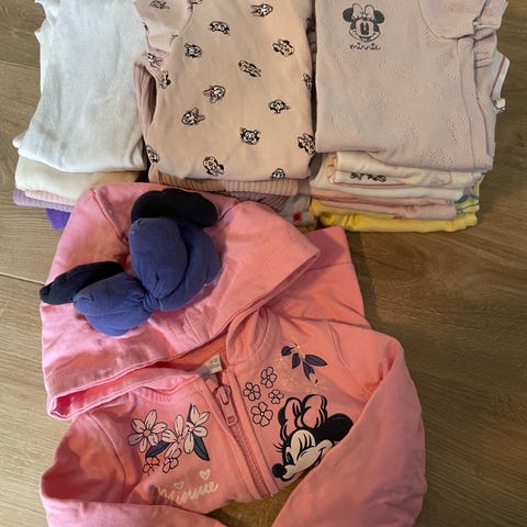 Klespakke 122/128 med jeansjakke med Minnie (Mikke Mus) , fleecegenser og tynn genser