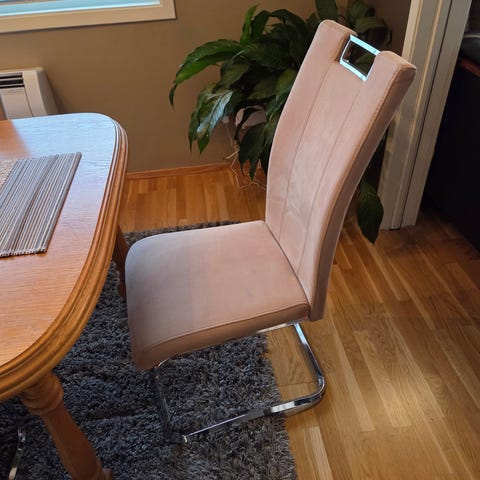 Godt brukt spisebord med 6 stoler selges. Har hatt mye glede av bordet men trenger nå et mindre ☺️