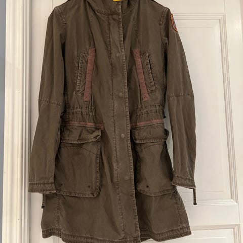 Parajumpers dun jakke i beige/grå farge med lekker glans i stoffet. Størrelse L, men passer også M da den er liten i størrelsen. Jakken er lite brukt da den ble litt knapp for meg og er i veldig god stand. Ny pris var 7000.