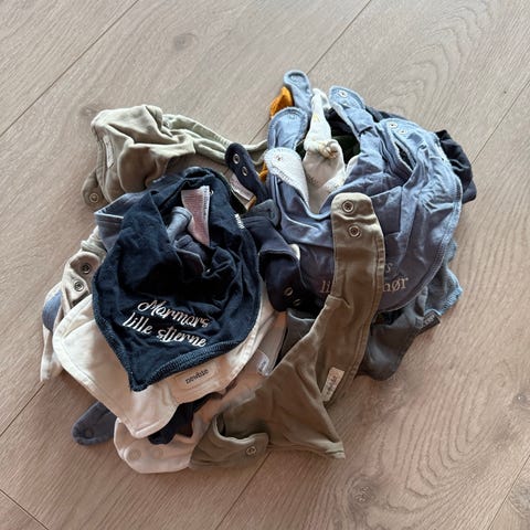 13 smekker til salgs🌸 8 av disse er fra newbie🌸 Den ene er av bambus, resten av bomull🌸 2 av smekkene har noen små flekker, se bilder🌸