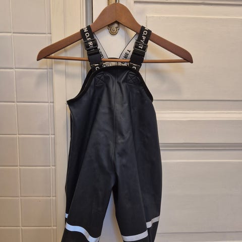 Utebukse fra Polarn O.Pyret i 100% polyamid str 80 (9-12 M). Sort med refleks på bena, justerbare henglser og glidelås i front.