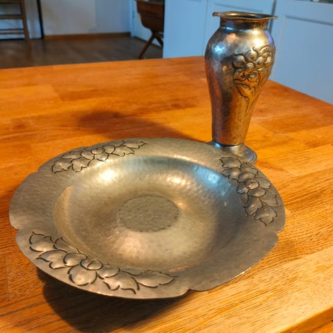 Antikk vekt med to messingvektskåler og dekorativt metallstativ. Vekten har et klassisk design med utsmykkede detaljer. Medfølgende sett av messingvekter i ulike størrelser. Høyde på vekta er 42 cm og største bredde ca 40 cm. Sendes i Norge . Mottaker betaler frakt