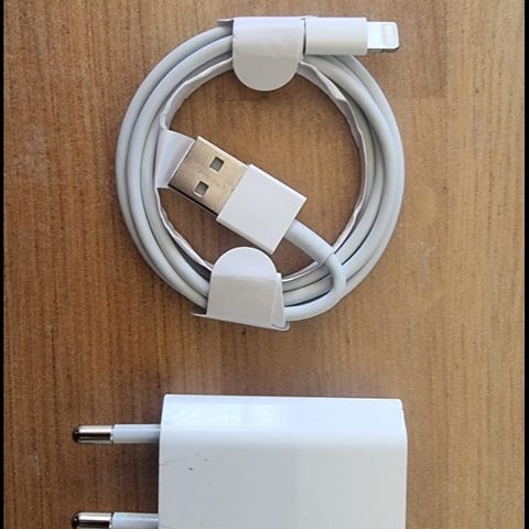 Helt ny og ubrukt iPhone hurtiglader med kabel, levert i original forseglet emballasje.