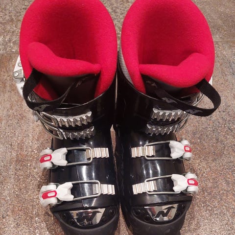 Nordica Sport Jr. alpinstøvler i svart og rød farge. Utstyrt med spenner for justering og tilpasset juniorbruk.