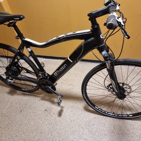 Winora Sinus tria 07. 50 cm ramme. Lite brukt og i god stand. Fikk full service før den ble satt inn for vinteen. Borsch, motor, batteri, dispay og styring og lader. Lyktene betjenes fra display på styret (ny frontlykt montert etter at bildene ble tatt). Rammelås med trippel funksjon (bare hjul, bare kjetting til feste i eks. sykkelstativ eller begge deler).